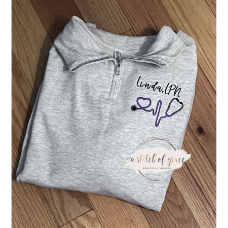 Embroidered Heart Stethoscope 1/4 Zip Sweatshirt Nurse