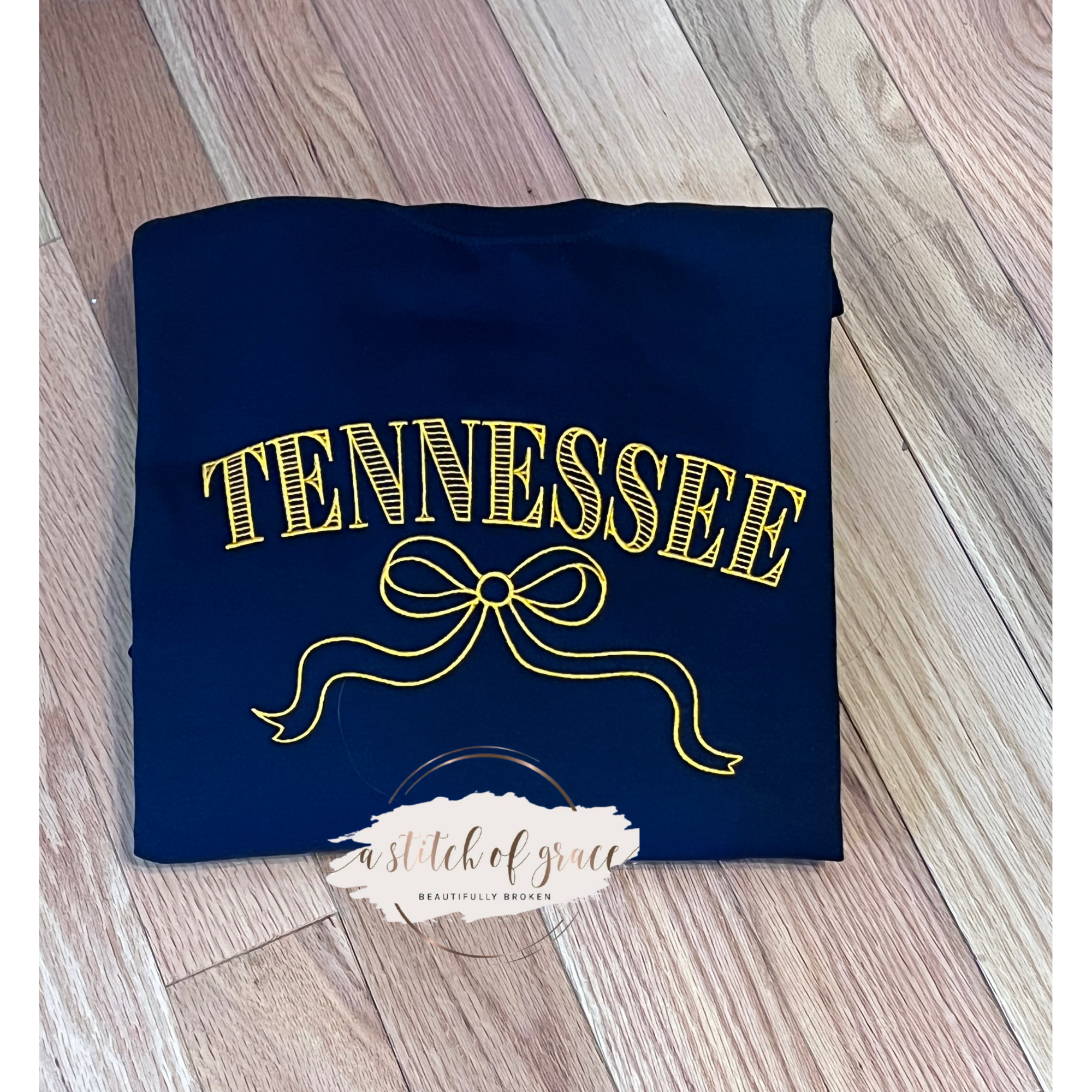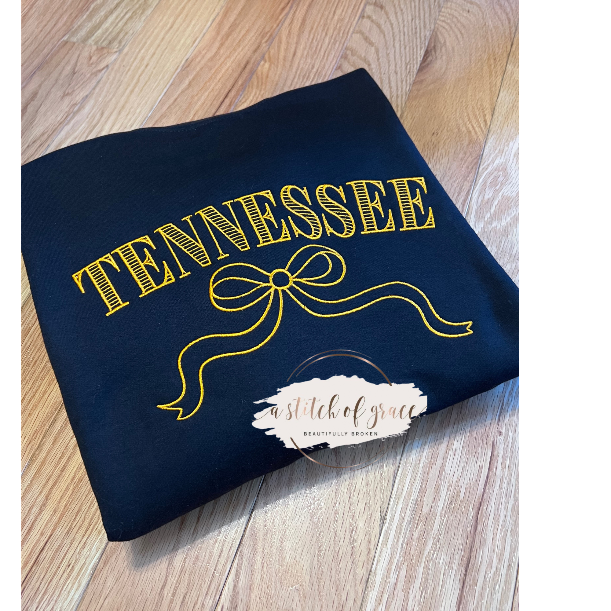 Classic Southern style with a feminine touch. This beautifully embroidered Tennessee design features detailed stitching and an elegant bow, creating a timeless look that’s perfect for everyday wear or gifting.