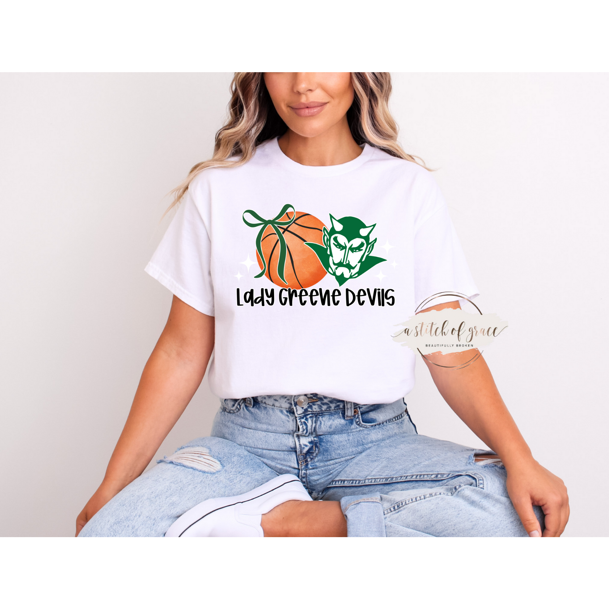 Support your team in style with this Lady Greene Devils Basketball tee! Designed for fans, players, and proud supporters, this shirt is perfect for game days, school events, and everyday wear. Comfortable, spirited, and easy to style, it’s a must-have for cheering on the Lady Devils all basketball season long.