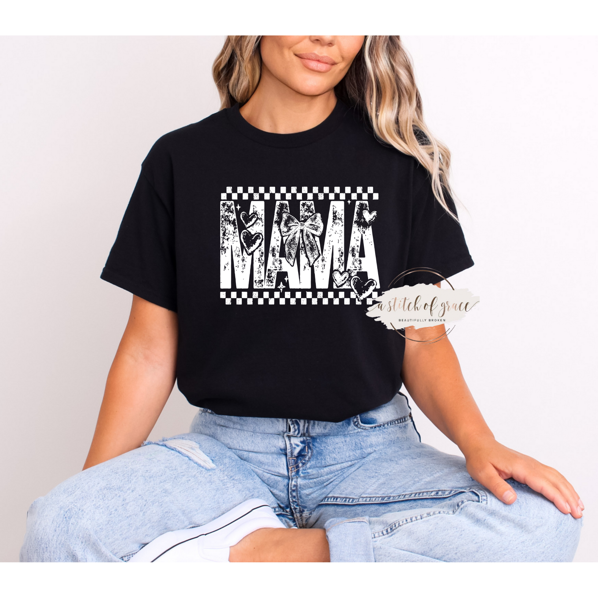 This Mama Distressed Bow Tee combines classic mama pride with a trendy, worn-in look. Featuring bold “Mama” lettering accented by a distressed bow, this design offers the perfect mix of feminine charm and laid-back style.