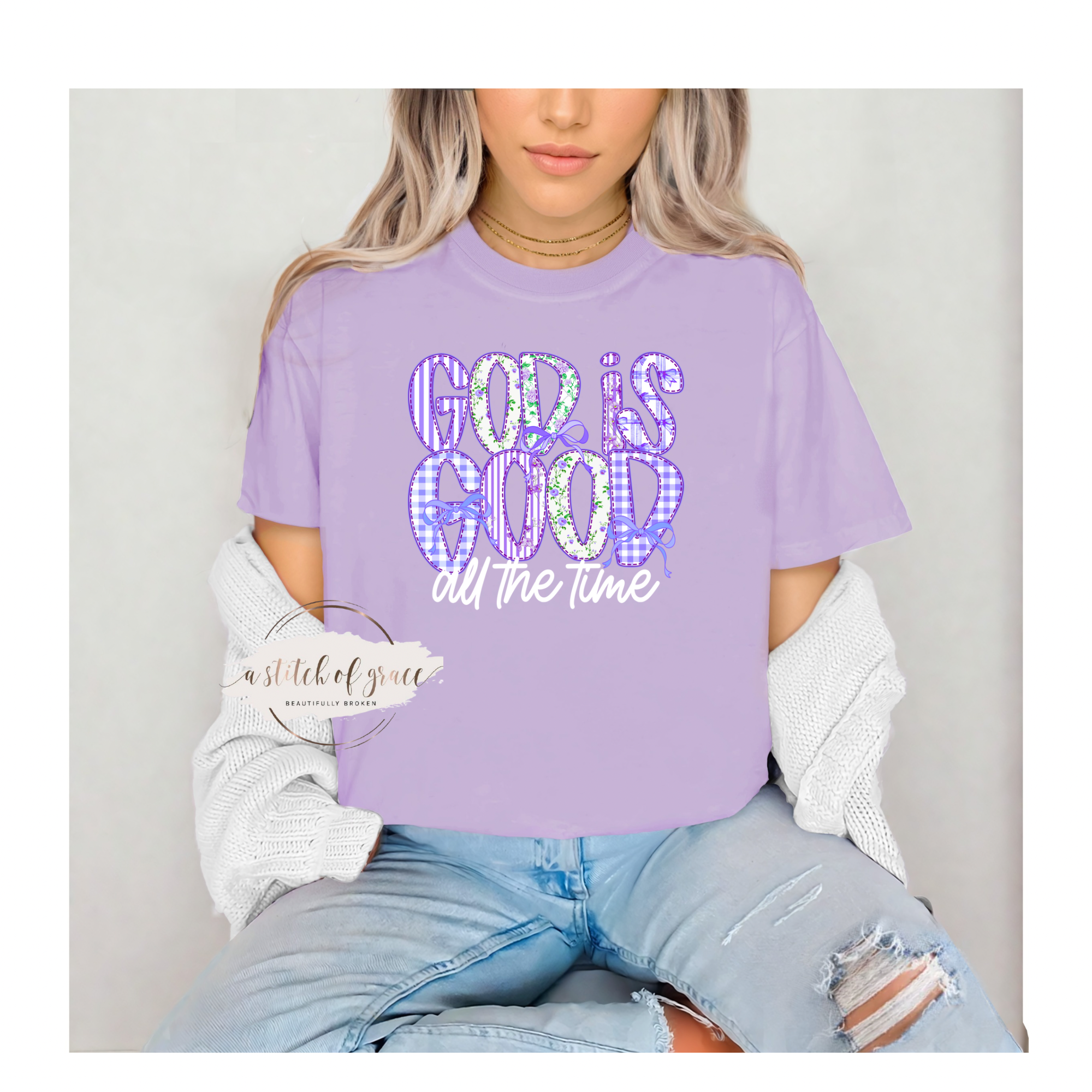 “God Is Good All the Time.” A faith-filled purple tee designed to share truth, encouragement, and everyday comfort.