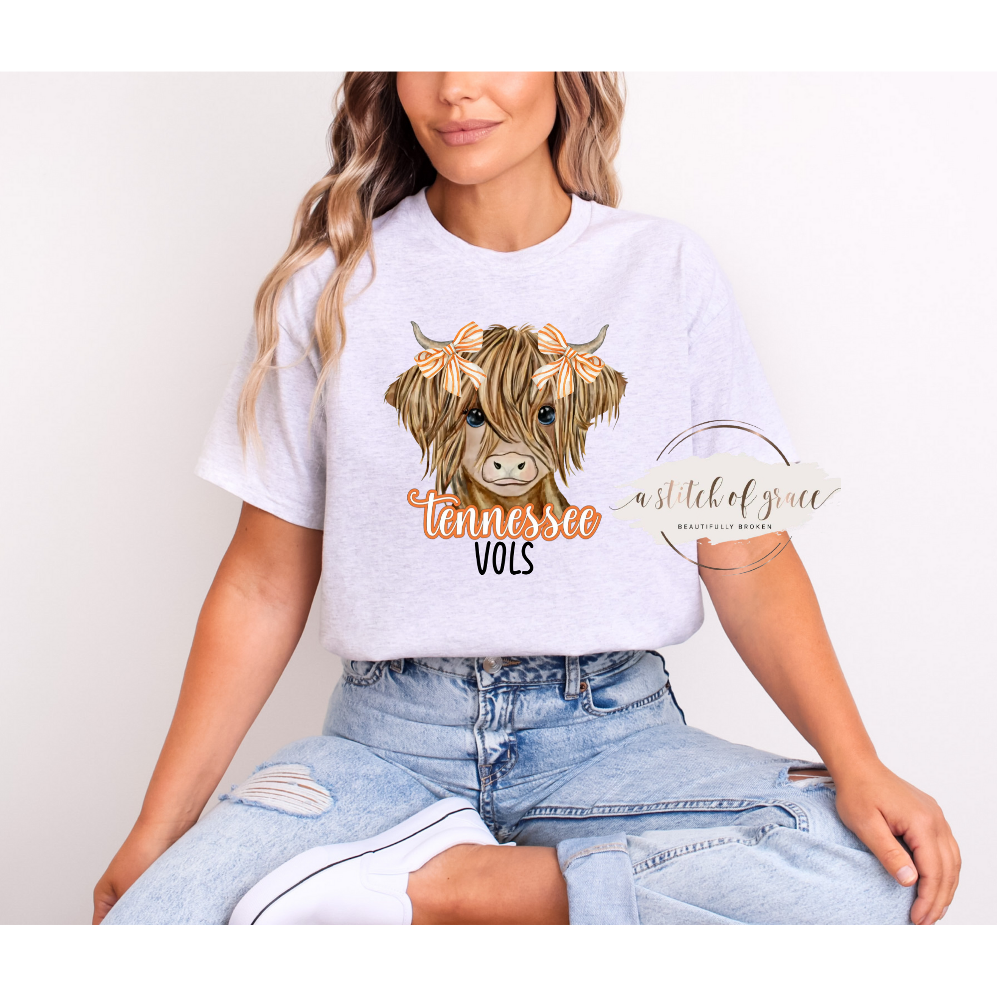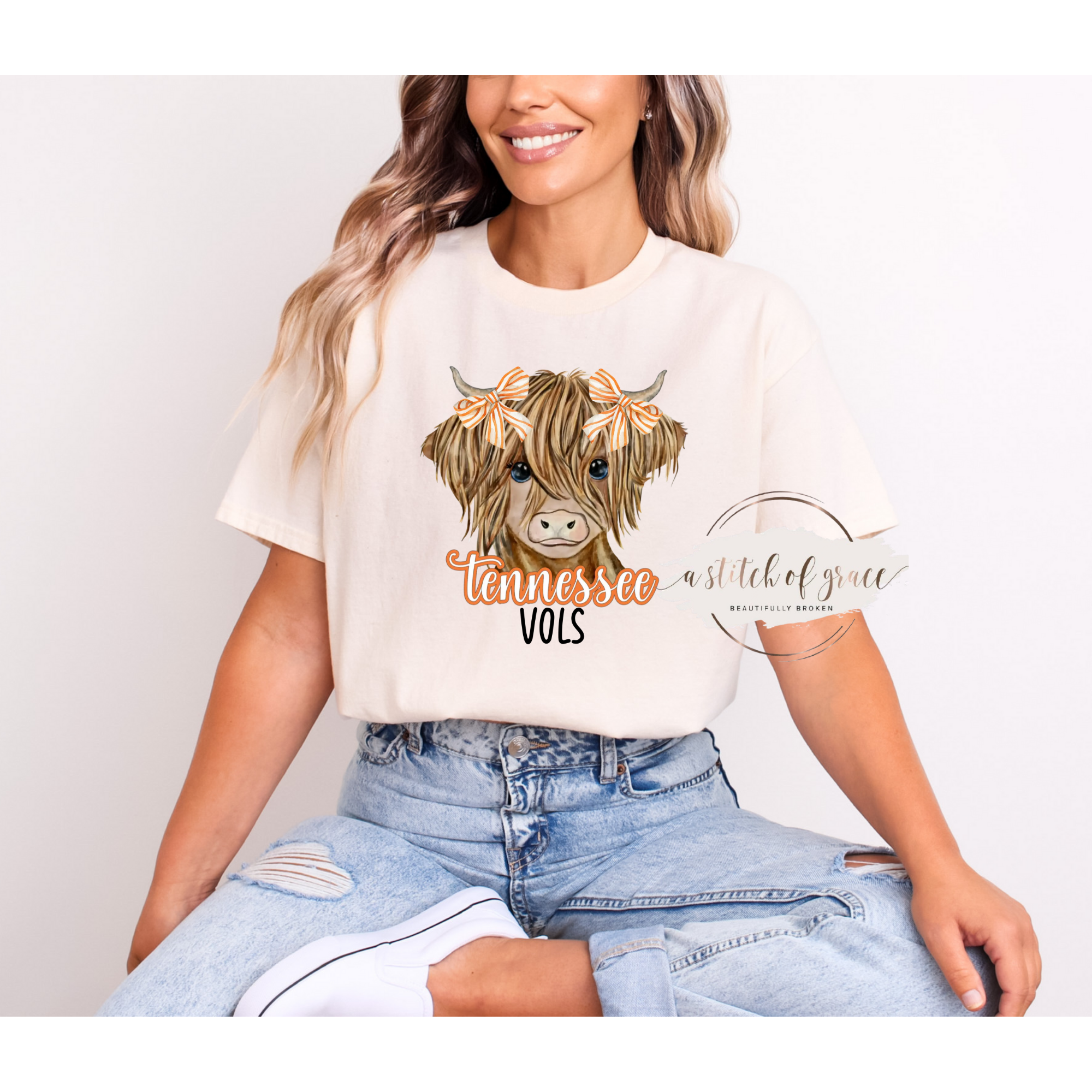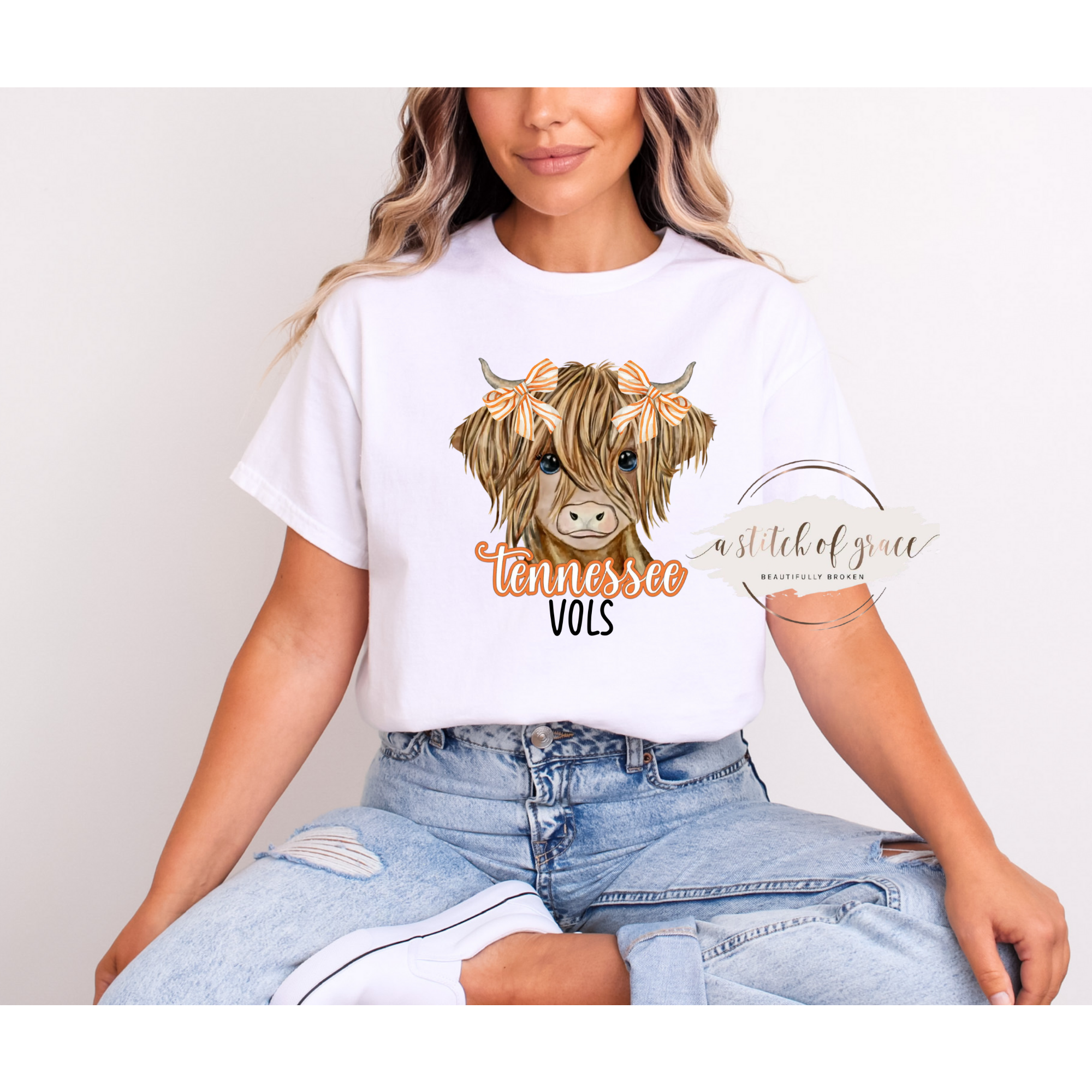 Show your Vols pride with this adorable Tennessee Highland cow tee — the perfect mix of cute and game-day ready.