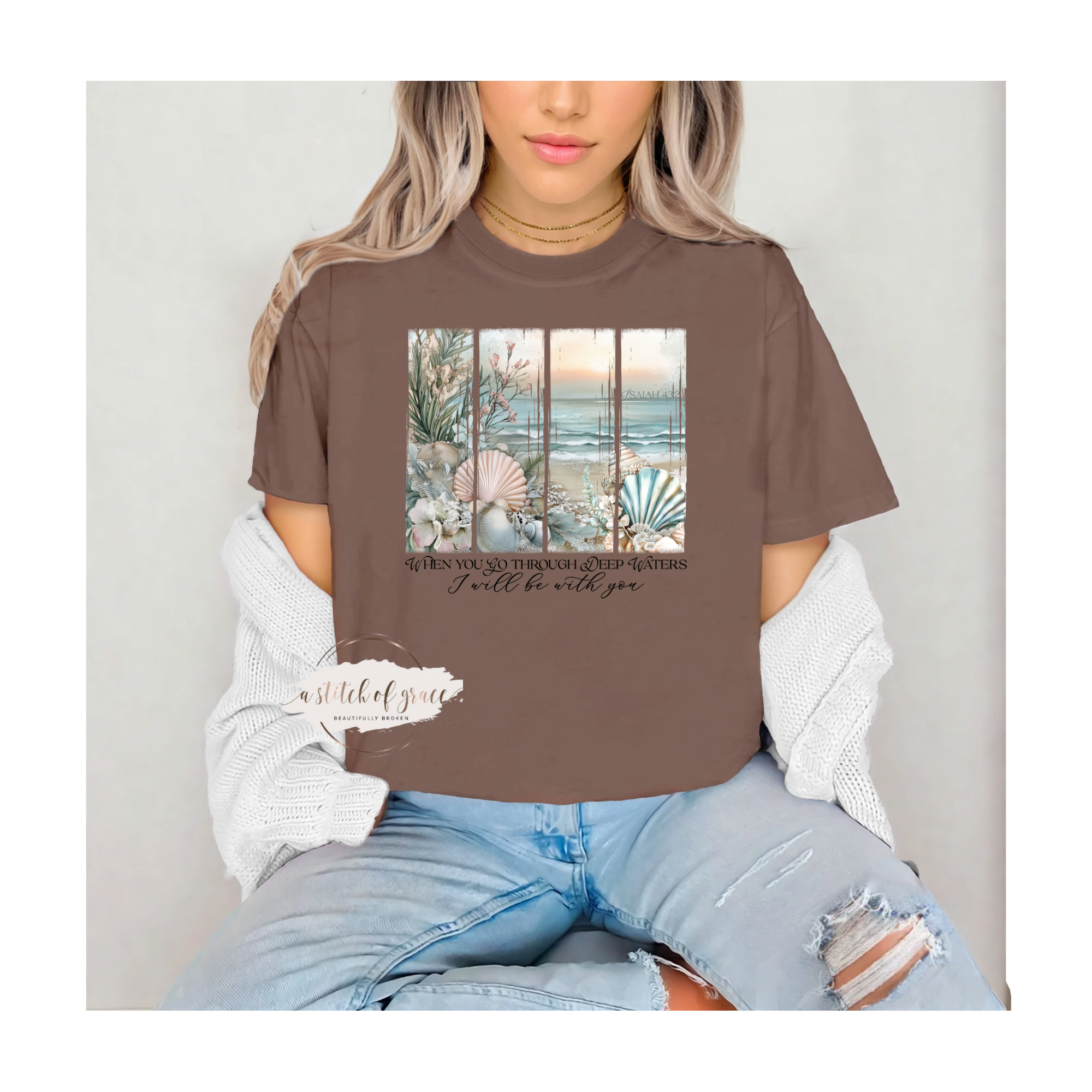 “When you go through deep waters, I will be with you.” A faith-filled short sleeve tee offering comfort, strength, and hope.