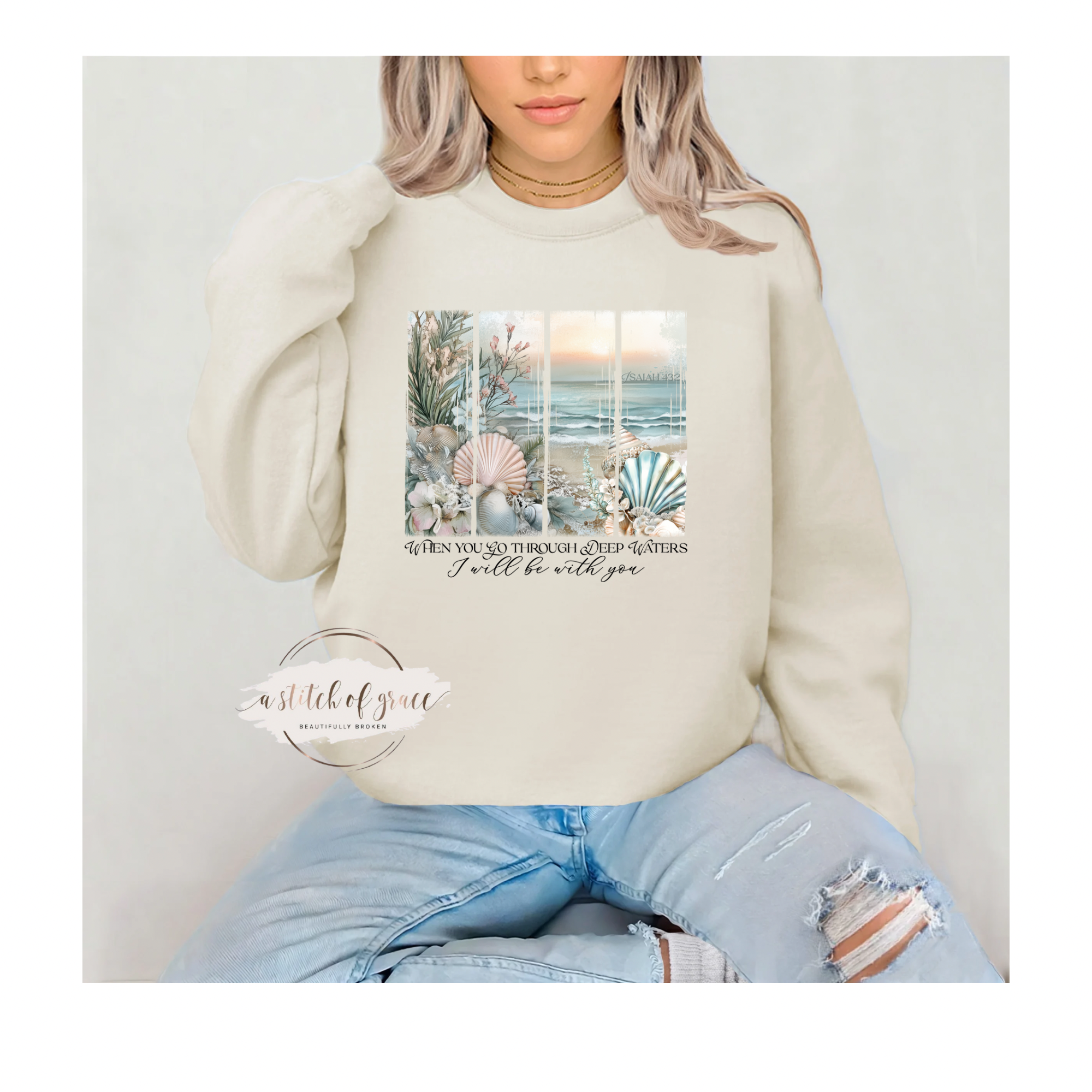 “When you go through deep waters, I will be with you.” A powerful faith-based sweatshirt designed to bring comfort, strength, and hope.